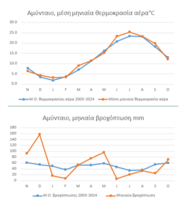 Καιρικές συνθήκες καλλιεργητικής περιόδου (Νοέμβριος 2024 – Οκτώβριος 2025)
