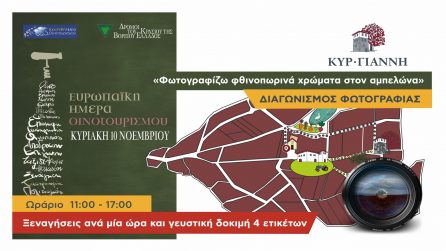10/11/2019 10 Νοεμβρίου: Ευρωπαϊκή Ημέρα Οινοτουρισμού στο Κτήμα Κυρ-Γιάννη Η Ευρωπαϊκή Ημέρα Οινοτουρισμού πραγματοποιείται και εορτάζεται από το 2009, τη δεύτερη Κυριακή του Νοεμβρίου, με τη συμμετοχή οινοποιείων που ανήκουν στο Ευρωπαϊκό Δίκτυο …