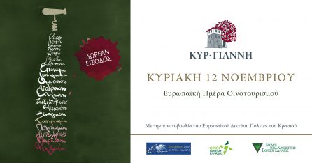 12/11/2017 Η Κυρ-Γιάννη γιορτάζει την Ευρωπαϊκή Ημέρα Οινοτουρισμού τη Κυριακή 12 Νοεμβρίου 2017 Η Ευρωπαϊκή Ημέρα Οινοτουρισμού πραγματοποιείται και εορτάζεται από το 2009, τη δεύτερη Κυριακή του Νοεμβρίου, με τη συμμετοχή οινοποιείων που ανήκουν στο Ευρωπαϊκό …
